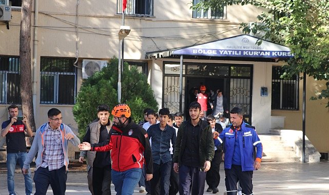 Afet ve Acil Durum Yönetimi Başkanlığı (AFAD), ile Diyanet İşleri Başkanlığı arasında yapılan protokol ve işbirliği ile Türkiye’de yaşanabilecek her tür ve ölçekteki afet ve acil durumlara etkin müdahale için ülke genelinde eş zamanlı ‘’Deprem Anı ve Tahliye Tatbikatı’’ gerçekleştirdi. Bu kapsamda 2022 yılı ‘’Tatbikatlar Yılı’’ olarak ilan edildi.Şanlıurfa’da 605 Kur’an Kursunda 16 bin 434 öğrencinin katılımıyla uygulanan tatbikat gerçekleri aratmadı. Ayrıca 14 Müftülük binasında 1154 personelin katılımıyla tatbikatlar başarıyla tamamlandı.Haliliye İlçesine Bağlı Bölge Yatılı Erkek Kur’an Kursu ve Dini İhtisas Merkezinde gerçekleştirilen ‘’Deprem Anı ve Tahliye’’ tatbikatına Haliliye Kaymakamı Serap Özmen Çetin, AFAD İl Müdürü Mahmut Sönmez, İl Müftüsü Ramazan Tolan, Haliliye İlçe Müftü Vekili Osman Ekşioğlu, Diyanet Dini İhtisas Merkezi Müdürü İdris Kalay ile öğrenciler katıldı. Saatler 10.00’u gösterdiğinde siren sesleriyle tatbikat başlatıldı. Tatbikatta İtfaiye, Sağlık, AFAD ve UMKE ekipleri hazır bulundu. İçeride bulunan öğrenciler, ‘’Deprem Anı, Çök-Kapan-Tutun ve Tahliye’’ uygulamasını gerçekleştirdi. Sivil Toplum Kuruluş temsilcileri kendi aralarında görev dağılımı gerçekleştirdiler. Öğrencilerin tahliyesi AFAD, UMKE ve Sağlık ekiplerinin eşlik etmesiyle gerçekleştirildi. Tahliye işlemlerinin ardından Uzmanlar tarafından öğrencilere bilgilendirme yapıldı. Deprem öncesi alınacak önlemler, deprem anında ve deprem sonrasında yapılması gerekenler ve güvenli bir şekilde tahliyelerin nasıl olması gerektiği konusunda bilgiler verildi. Şanlıurfa İl Müftüsü Ramazan Tolan, yapılan uygulamanın çok önemli olduğunu vurguladı. Deprem anında ve sonrasında nasıl davranılması gerektiğinin hayati önem taşıdığını söyledi. Müftü Tolan, tatbikatta emeği geçenlere de teşekkür etti.