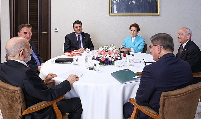 6 siyasi partinin lideri, Saadet Partisi Genel Başkanı Temel Karamollaoğlu ev sahipliğinde altıncı kez bir araya geldi. Görüşmenin ardından yapılan ortak açıklamada “Bugünden itibaren seçim öncesi, seçim dönemi, seçim günü ve seçim sonrası olmak üzere önümüzdeki tüm süreçlerde istişareye önem veren anlayışımızla birlikte yol yürümeye devam etme kararlılığında olduğumuzun altını tekraren çizmek isteriz” ifadeleri kullanıldı.CHP Genel Başkanı Kemal Kılıçdaroğlu, Saadet Partisi Genel Başkanı Temel Karamollaoğlu, İYİ Parti Genel Başkanı Meral Akşener, Demokrat Parti Genel Başkanı Gültekin Uysal, Gelecek Partisi Genel Başkanı Ahmet Davutoğlu ve DEVA Partisi Genel Başkanı Ali Babacan’ın imzasıyla yapılan ortak açıklama şöyle: