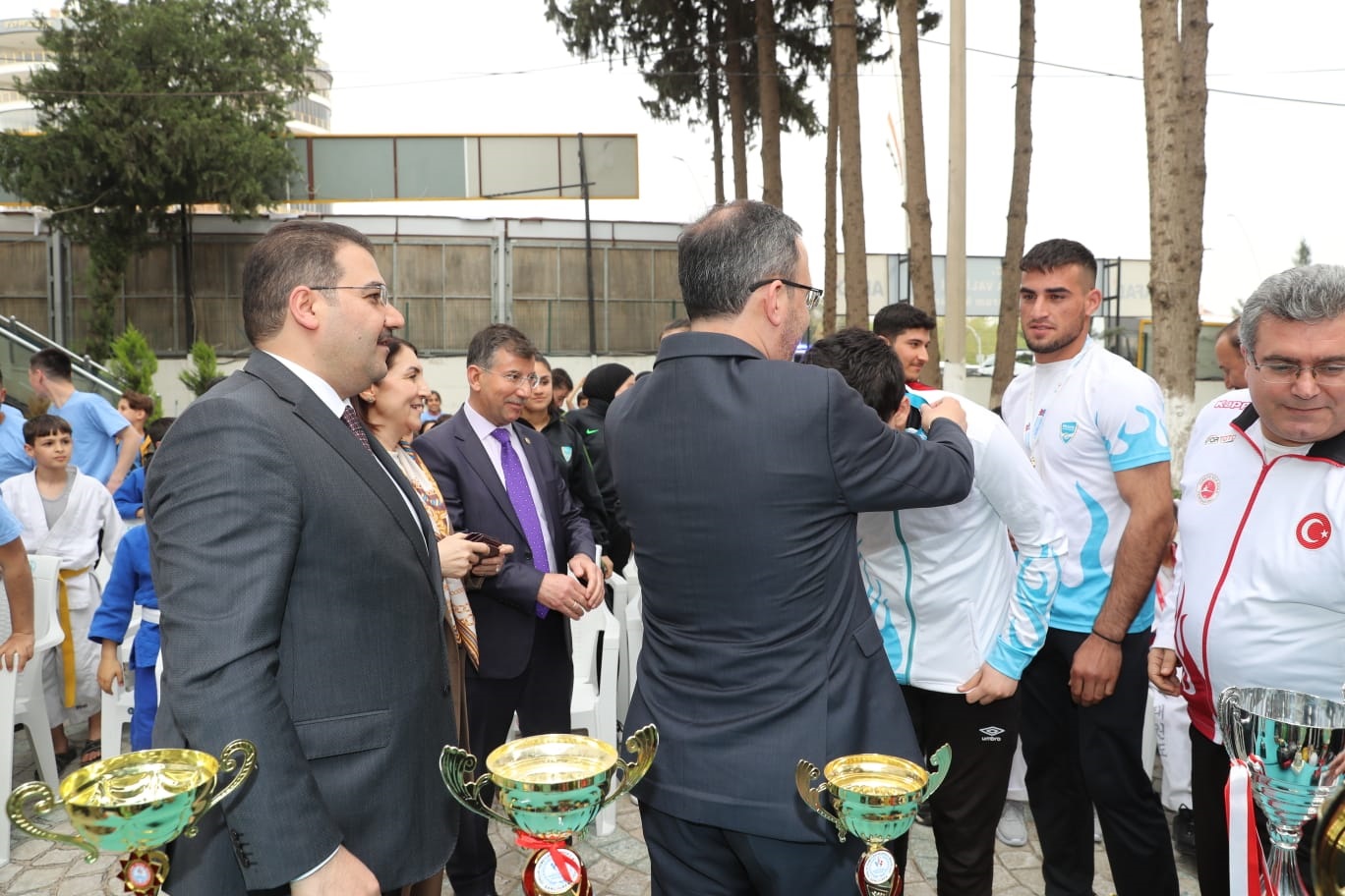 Haliliyeli sporcularla bir süre sohbet eden Bakan Kasaoğlu, birçok branşta derece alan gençlere başarılar diledi.