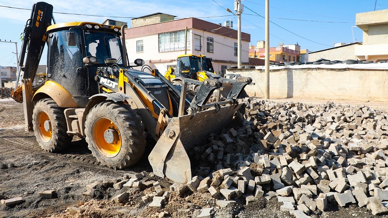 Harran Belediyesi Fen İşleri Müdürlüğü tarafından, ilçe merkezinin genelinde kilitli parke taşı döşeme çalışmaları devam ediyor.