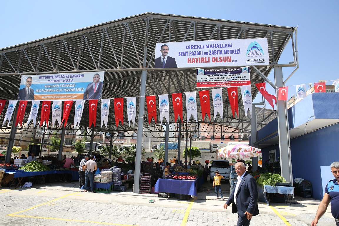 Halk oyunları gösterisi, Eyyübiye Belediye Başkanı Mehmet Kuş ve katılımcıların selamlama konuşmaları ile başlayan törene, AK Parti Eyyübiye İlçe Başkanı Mehmet Moğal, Kadın Kolları Başkanı Gülten Balcı, Gençlik Kolları Başkanı Hamza Göktaş, Belediye Başkan Yardımcıları ve Meclis Üyeleri, Muhtarlar Dernek Başkanı ve Direkli Mahalle Muhtarı Mehmet Kestop, Semt Pazarcıları Dernek Başkanı Halit Babacan, bölge muhtarları, sivil toplum kuruluşları başkanları, semt pazarı esnafı ve vatandaşlar katıldı.