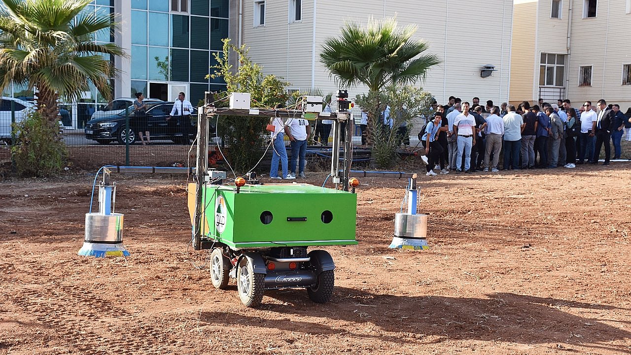 Etkinliğin devamında ise Harran Üniversitesi Dijital Tarım Üssü Deneme Alanında, dijital gübreleme ve sulama uygulamalarının yanında, katılımcılara Ziraat Fakültesi Öğretim Üyesi Doç. Dr. Mehmet Şenbayram ve Mühendislik Fakültesi Dr. Öğretim Üyesi Mehmet Hadi Süzer tarafından yazılımları ve dizaynları yapılmış arazi tespit otonom aracı ve droneler ile pamuk alanlarında gerçekleştirilen uygulamalar, katılımcılara örneklerle açıklandı.