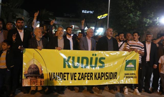Basın açıklamasının öncesinde toplanan kalabalığa seslenen HÜDA PAR Şanlıurfa İl Başkanı Emin Özaslan, "İşgalci terör çetesi israil, her Ramazan ayında kendisine sıradan bir ahlak edinmiş gibi Kudüs'e ve Mescid-i Aksa'ya saldırıyor. İslam Ümmeti olarak bizde dünyanın dört bir tarafında hep beraber sesimizi yükselterek Kudüs'e ses verelim. Oradaki kardeşlerimize destek mesajı gönderelim. Şanlıurfa Peygamberler şehridir, Kudüs de Peygamberler şehridir. Şanlıurfa ve Kudüs, kardeş şehirlerdir. Peygamberler şehri olan Şanlıurfa'dan, Peygamberler Şehri olan Kudüs'teki kardeşlerimize seslerimizi ulaştıracağız. Türkiye'nin ve dünyanın dört bir tarafında bugün basın açıklamaları yapılıyor ve destek mitingleri düzenleniyor. Filistin'deki kardeşlerimiz, seslerimizi duyuyorlar. Ulusal basın ajanslarında çıkan haberlere baktıkları zaman bu onlar için en büyük destek oluyor. Bugün hem sesimizi yükselteceğiz hem de onlar için dua edeceğiz." ifadelerini kullandı.