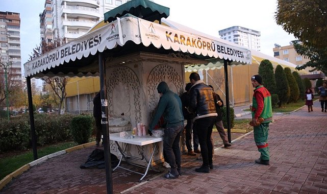 Karaköprü Belediyesi Sosyal İşler Müdürlüğü tarafından vatandaşın hizmetine sunulan ikram çeşmesi Cuma günleri vatandaşlara sıcak çorba hizmeti veriyor. Yaz aylarında havaların sıcak olması ile birlikte ikram çeşmesinden soğuk içecekler akarken, havaların soğumasıyla birlikte çeşmeden sıcak çorba akmaya başladı.Her Cuma günü sabahın erken saatlerinde işe giden vatandaşlar ile okula giden öğrenciler sıcak çorba ve ekmek ikramıyla içini ısıtıyor.Yapılan bu hizmetten dolayı Karaköprü Belediye Başkanı Metin Baydilli'ye teşekkür eden vatandaşlar Cuma sabahları sıcak çorba ile hem fırsat bulamadıkları kahvaltı öğününü yediklerini hem de soğuklarda içlerinin ısındığını dile getirdiler.Öte yandan, kış ayları boyunca her Cuma günü sabah erken saatlerde sıcak çorba ikramının süreceğini belirtirken, yaklaşık 1500 kişinin bu ikramdan faydalandığı bildirildi.
