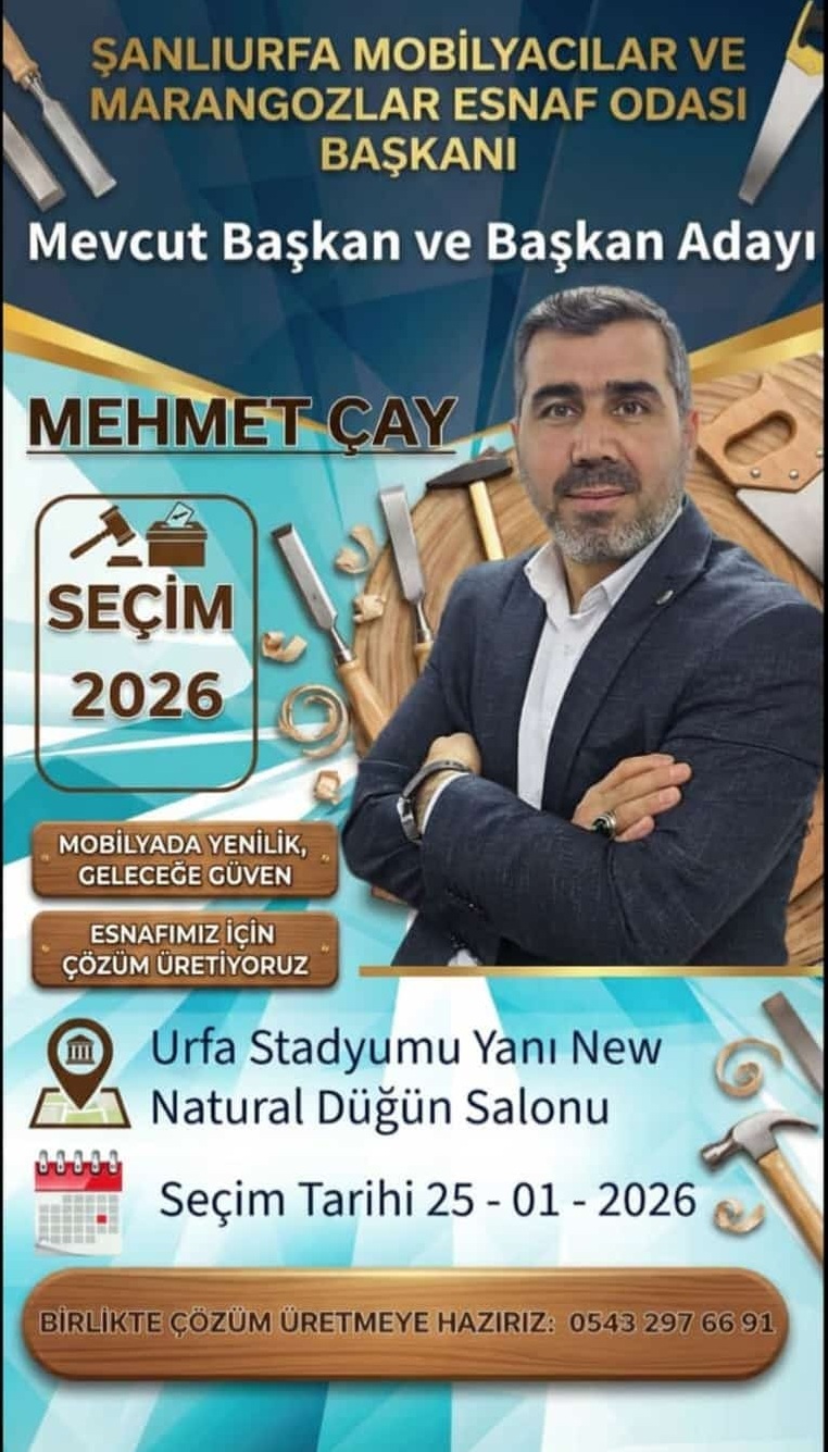 Şanlıurfa Marangozlar ve Mobilyacılar Odası Başkan Adayı Mehmet Çay, 25 Ocak 2026 tarihinde gerçekleştirilecek oda seçimleri öncesinde marangoz ve mobilyacı esnafına seslenerek destek istedi ve tüm üyeleri oy kullanmaya davet etti.Görev süresi boyunca hayata geçirilen projeler ve yürütülen çalışmalarla esnafın sorunlarına çözüm üretmeye odaklandıklarını ifade eden Başkan Adayı Çay, yeni dönemde de aynı anlayışla hizmet etmeye devam etmek istediklerini dile getirdi.“Mobilyada Yenilik, Geleceğe Güven” sloganıyla başlatılan çalışmaların sektöre ivme kazandırdığını belirten Mehmet Çay, değişen piyasa koşullarına uyum sağlayan, yeniliği ve kaliteyi esas alan bir yönetim anlayışı benimsediklerini söyledi. Esnafın üretimden pazarlamaya, mesleki eğitimden sosyal haklara kadar birçok alanda desteklenmesi için yoğun çaba sarf ettiklerini vurgulayan Çay, şunları kaydetti:“Biz bu görevi bir makam olarak değil, esnafımıza hizmet etme sorumluluğu olarak gördük. Sorunları yerinde dinledik, çözüm için ilgili kurumlarla sürekli temas halinde olduk. Esnafımız için çözüm üretiyoruz. Bu anlayışla yolumuza devam edebilmek adına tüm esnafımızın oylarına talibim.”Seçimlerin 25 Ocak 2026 Pazar günü, Şanlıurfa Stadyumu yanı New Naturel Düğün Salonu’nda yapılacağını hatırlatan Mehmet Çay, sandığa giderek oy kullanmanın oda yönetiminde söz sahibi olmak açısından büyük önem taşıdığını belirtti. Katılımın yüksek olmasının, esnafın birlik ve beraberliğini daha da güçlendireceğini ifade etti.Başkan Çay, sözlerini tüm marangoz ve mobilyacı esnafını demokratik bir ortamda gerçekleştirilecek seçimlere katılmaya davet ederek tamamlarken, yaklaşan seçimlerin Şanlıurfa esnafı ve sektörün geleceği adına hayırlı olmasını temenni etti.