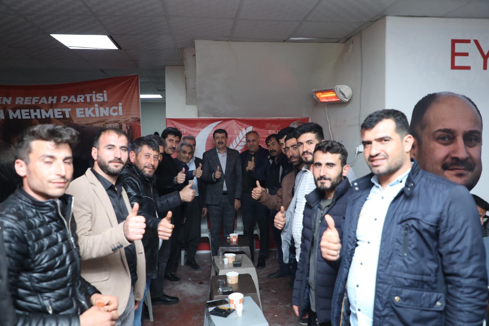 Yeniden Refah Partisi Eyyübiye belediye başkan adayı Mehmet Ekinci'ye destekler her gün çığ gibi büyür iken, seçim bürosu görkemli kalabalığı ile dolup taşımaya devam ediyor.