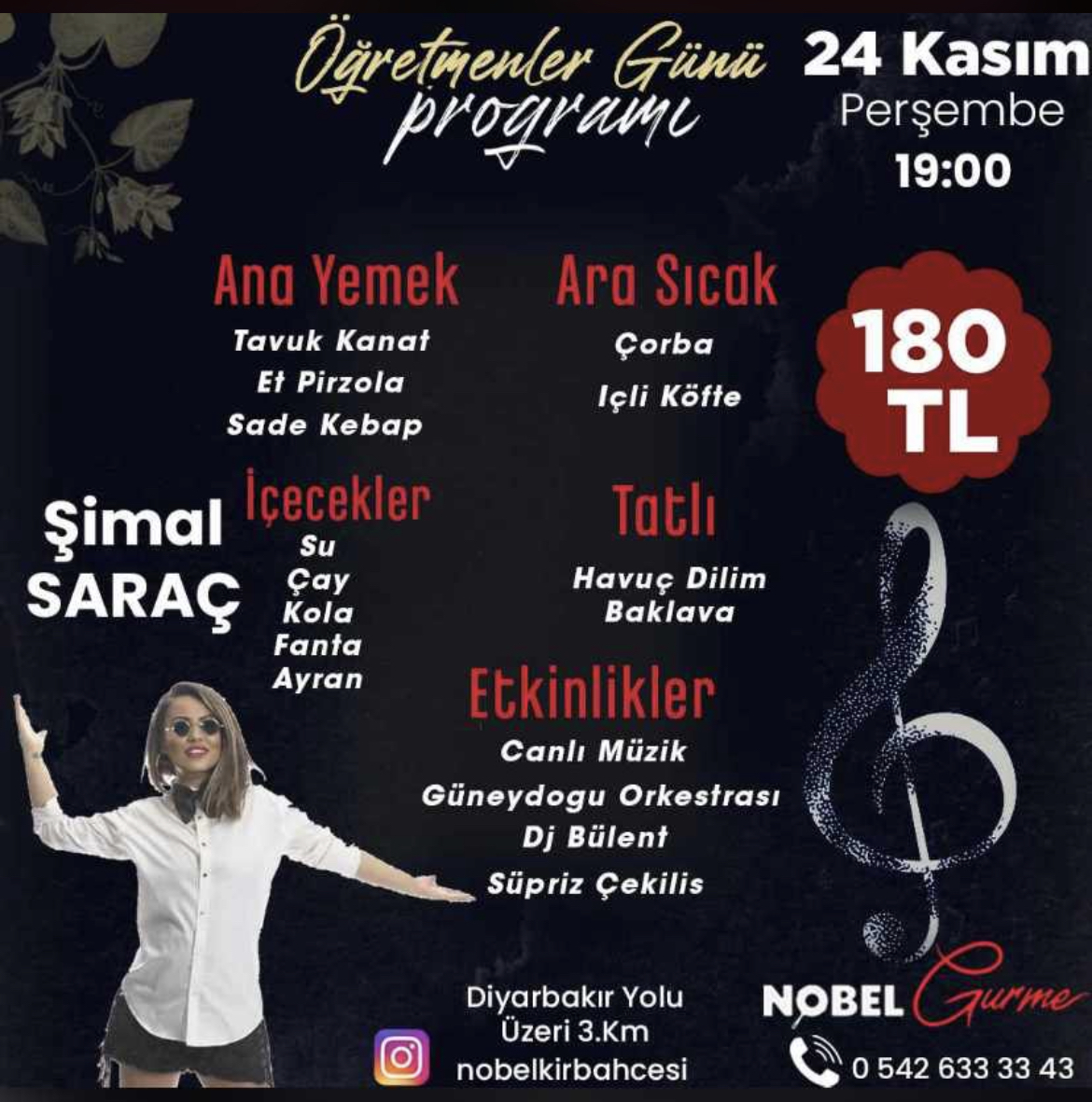Şanlıurfa Nobel cafede öğretmenler gününe özel proğram düzenlenecek. 24 Kasım Öğretmen gününe özel gerçekleşen olan gecede bir birinden farklı etkinlikler yapılacak.