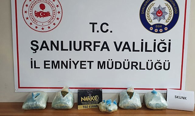 Şanlıurfa Valiliği tarafından yapılan açıklamada; “İl Emniyet Müdürlüğü ekiplerimizce yapılan çalışmalar sonucunda; Yolcu otobüsünde yapılan aramada; 4 parça halinde 2,850 gram Skunk ile 423 gram Esrar ele geçirilmiştir.1 şahıs hakkında adli tahkikata başlanmıştır. Tebrikler” ifadeleri yer aldı.