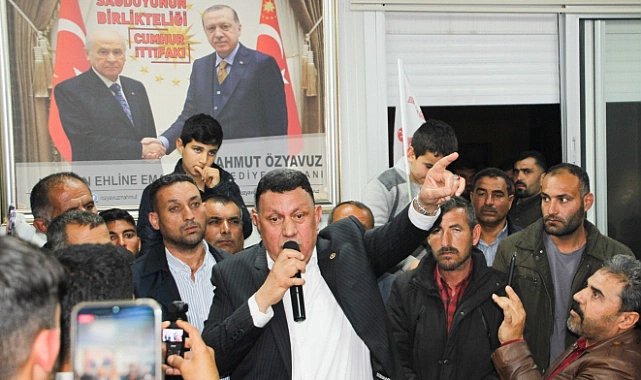 Güneydoğu Anadolu bölgesinin tek MHP’li belediye başkanı olan Özyavuz, iftardan sonra sahur, saatlerine kadar ilçe sakinleriyle zaman geçirerek istek, öneri ve talepleri birinci ağızdan dinliyor.Özyavuz ile birlikte Harranlılarla Cumhur odasında bir araya gelen MHP Şanlıurfa Milletvekili İbrahim Özyavuz “Bütün dünyada istikrar yokken etrafımıza baktığımızda şu anda ülkemizde işin başında bir hükümet, bir cumhurbaşkanı ve kendisine canı gönülden hiçbir şey beklemeden karşılıksız destek veren Milliyetçi Hareket Partisi'nin Sayın Genel Başkanı Devlet Bahçeli var” dedi.Bu gücün ve kuvvetin Türkiye’nin ikinci yüzyılında da elde tutmak gerektiğini ifade eden milletvekili Özyavuz, şöyle devam etti: “Bizim buradaki gayemiz sadece Harran Belediye başkanlığı seçimini kazanmak değildir. Burada geçmişten bugüne yapılan hizmet mukayesesine de oy vermenizi sizlerden talep edeceğim. Değişim neyle olur? insanların beyninde olur. Düşüncesinde olur, hizmette olur. Fikri sabit olanların yapacak bir şey yok. Ama iş tecrübeye gelince geçmiş dönemlerdeki tecrübelere bakarak mukayese yaptığımızda Harran'da yapılan hizmetler ön tarafa çıkıyor. Şimdi Harran'da bir belediye başkanı var. Diyor ki ‘ben 30 köyde parke taşı yaptım’. Bu köylerin de hepsini biliyorsunuz. Şimdi ben soruyorum. Milliyetçi Hareket Partisi Belediye Başkanı'ndan önce kaç köyde parke taşı yapılmış ve kaç metrekare yapılmış? Bunun bir hesabını yapın. Ben size söyleyeyim, yorulmayın. Toplamda 10 bin metrekare parke taşı yapılmış. Ama Milliyetçi Hareket Partisi farkıyla bugüne kadar bir milyon dört yüz bin metrekare parke taşı yapılmış. Bunun yanında Harran’da grup yolları gibi birçok ana hizmet yapıldı. Harran yolları için 2007 yılında ilk ödeneğini ben çıkardım, devam etti. Şimdi Eyüp Nebi'ye kadar devam ediyor bu asfalt yol. Geçmiş dönemlerde 40 kilometre büyükşehir asfalt çalışması yapmış. Beş senede Haram Belediyesi üç yüz yetmiş beş kilometre asfalt çalışması yaptı. Birçoğunuzun köyünde de şu anda asfalt çalışması var. Ayırmadan ayrıştırmadan. Kırsal mahallelerinin tamamının içine asfaltının altyapısını sosyal donatılarını mutlaka yapacağız. Bu hizmetlerin devam etmesi lazım. Şimdi gelenler neyi vaat ediyor?”