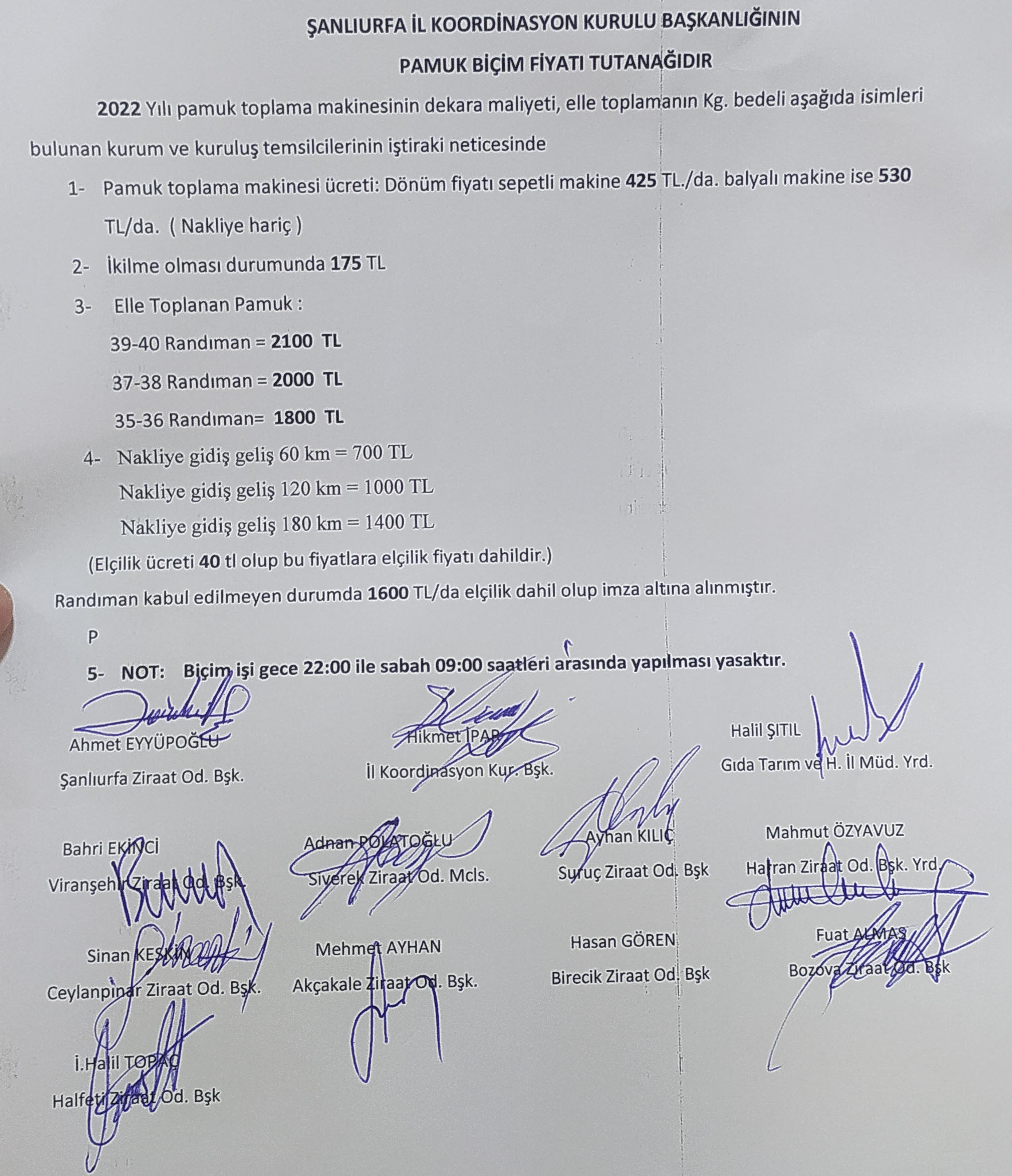Şanlıurfa Ziraat Odaları İl Koordinasyon Kurulu tarafından dün belirlenen 2022 yılı hasat dönemi pamuk toplama ücretleri yeniden güncellendi.