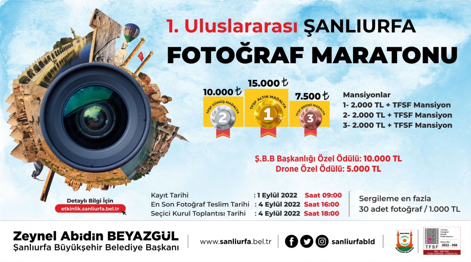 Şanlıurfa Büyükşehir Belediyesi tarafından düzenlenecek olan 1. Uluslararası Şanlıurfa Fotoğraf Maratonu kayıtları başladı. Türkiye’nin çeşitli illerinden kente gelen fotoğraf tutkunları maratonda kentin tarihi ören yerlerini fotoğraflayacak.Şanlıurfa Büyükşehir Belediyesi ile Türkiye Fotoğraf Sanatçıları Federasyonu iş birliğiyle Şanlıurfa’da 1. Uluslararası Şanlıurfa Fotoğraf Maratonu düzenlenecek. İlk kez düzenlenecek olan etkinlik için fotoğraf sanatçıları kente gelmeye başladı.