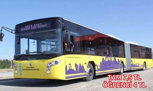 Şanlıurfa'da Ulaşım Koordinasyon Merkezinde yapılan toplantıdan zam çıktı.Alınan zam kararına göre;Tam bilet fiyatı 5,50 liradan 7,50 lirayaÖğrenci bileti 3 liradan yerine 4 lirayaÖğretmen biletinin 5 liradan 7 liraya çıkarma kararı alındı.Öğrenciler için uygulanan abonman kart fiyatı 75 biniş olan abonman kartları 105 liradan 150 liraya; 120 biniş olan abonman kartı 150 liradan 220 liraya çıkarıldı.Zamlı fiyatın 19 Temmuz Çarşamba gününden itibaren geçerli olacağı belirtildi.