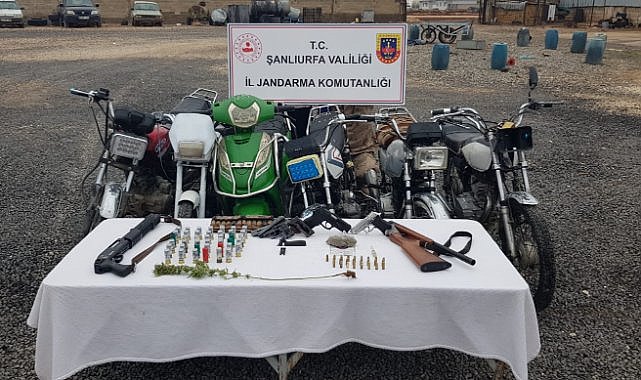 Şanlıurfa İl Jandarma Komutanlığına bağlı Jandarma Suç Araştırma Timi ( JASAT) ve asayiş timleri Viranşehir ilçesinde K.V şüpheli şahsın kaldığı adrese operasyon düzenledi.Operasyonda adrese yapılan aramada 30 gram kubar esrar, 2 gram metamfetamin, 1 kök kenevir, 1 adet uyuşturucu madde kullanma aparatı, 4 adet tabanca, 2 adet ruhsatsız av tüfeği, 33 adet tabanca fişeği, 71 adet av tüfeği kartuşu, 6 adet çalıntı motosiklet ele geçirildi.Olayla ilgili gözaltına alınan K.V., şüpheli hakkında Cumhuriyet Başsavcılığınca “Uyuşturucu Madde İmal ve Ticareti ve Motosiklet Hırsızlığı” olmak üzere (3) ayrı suçtan soruşturma başlatıldı.Olayla ilgili soruşturmanın devam ettiği öğrenildi.